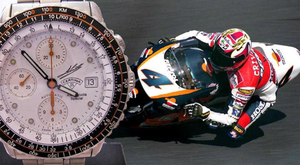 To commemorate Crivillé’s historic achievements, Certina has released several Àlex Crivillé edition timepieces including the Certina Attack Àlex Crivillé limited edition ana digi (ref. 19911904298), Certina Chronograph Automatic Alex Crivillé Special (ref. 674.8151.42), and an Alex Crivillé edition DS Cascadeur chronograph (ref. 8015). These exclusive pieces placed Crivillé on the list of Grand Prix world champion racers to have their own signature watches.